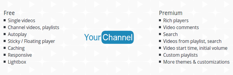 YourChannel поможет вам отобразить настроенную версию канала YouTube в WordPress. Для начала вам необходимо получить свою копию ключа YouTube API, имя пользователя и идентификатор канала и сохранить их в настройках плагина. Затем вы можете настроить несколько параметров конфигурации, таких как использование видеоплеера лайтбокса или включение / отключение таких функций, как отображение изображения баннера, списков воспроизведения, общего количества видео, просмотров и многого другого.