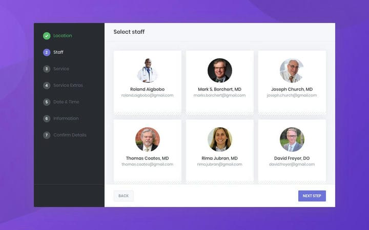 Когда ваша форма готова, клиенты могут использовать интерактивный календарь встреч (ежемесячный, еженедельный, ежедневный, а также просмотр списка / временной шкалы) и уникальный пошаговый мастер бронирования с фасетной фильтрацией, чтобы найти время встречи для конкретной услуги с конкретный сотрудник (или даже в точном месте). Когда пришло время платить, покупатели могут использовать встроенные платежные шлюзы Amelia, чтобы зарезервировать свое время или выбрать оплату на месте.