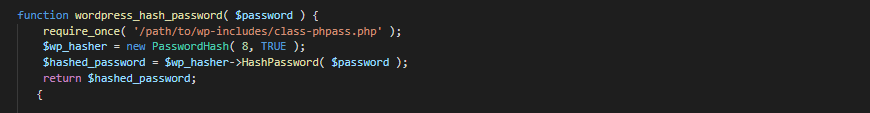 {Приведенный выше код является примером хеширования пароля WordPress.